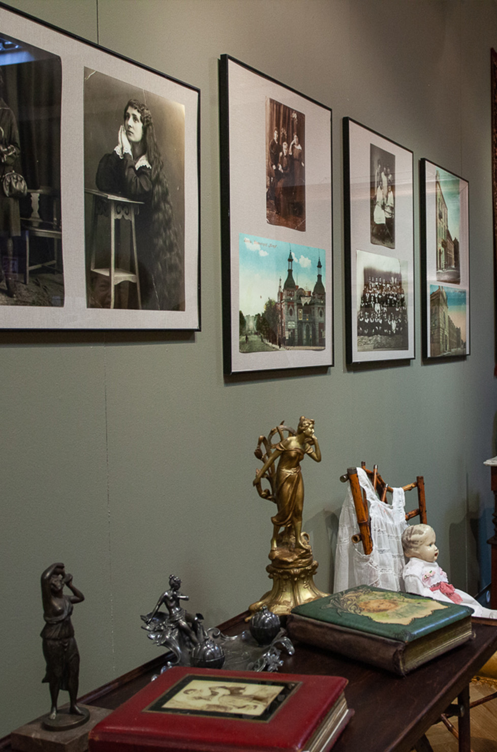 Zgromadzono tu meble w stylu secesyjnym, kolonialnym i eklektycznym, obrazy, tkaniny, bibeloty, przybory związane z życiem codziennym, podobnie jak książki, poradniki, czasopisma, albumy. Wystawa składa się z kilku sekwencji. Pierwszą stanowi pokój kobiecy, który łączy w sobie sypialnię panienki, kącik toaletowy pani domu i miejsce pracy krawcowej. Istotnym elementem są kopie zdjęć rodzinnych i szkolnych łomżynianki – Jadwigi Muszyńskiej, które stały się inspiracją dla stworzenia całości ekspozycji. Warto zwrócić uwagę na elementy stroju (kapelusze) oraz szeroką gamę przyborów toaletowych, w tym prostownicy czy lokówki wraz z ich podgrzewaczami na naftę. Kolejnym miejscem zaprezentowanym na wystawie jest salon. Służył on do przyjmowania gości. Mieszkańcy domu umieszczali na etażerkach przedmioty ozdobne, stanowiące ich chlubę, czy też przypominające o ważnych wydarzeniach z życia rodziny. Długie wieczory spędzano na wspólnym muzykowaniu, śpiewie lub na słuchaniu płyt gramofonowych. Ściany ozdabiane były portretami rodzinnymi, pejzażami, kilimami lub gobelinami. Pokój pana domu pokazany na wystawie jest zarówno gabinetem pracy, jak i miejscem spotkań towarzyskich, o czym informują chociażby samowar, barek w kształcie podkowy czy stolik z szachownicą, pełniący także funkcję karciaka. Centralną rolę spełnia w nim jednak biurko wraz z maszyną do pisania polskiej marki Orzeł. Na ścianie wisi obraz Czesława Wasilewskiego „Atak wilków”. Ostatnią częścią ekspozycji zajmuje kącik dziecięcy wraz z jego niezbędnymi atrybutami, takimi jak: stuletni wózek wiklinowy, portrety dzieci, konik na biegunach, pierwsze lektury i zabawki czy też pamiątki z chrztu i pierwszej komunii świętej.